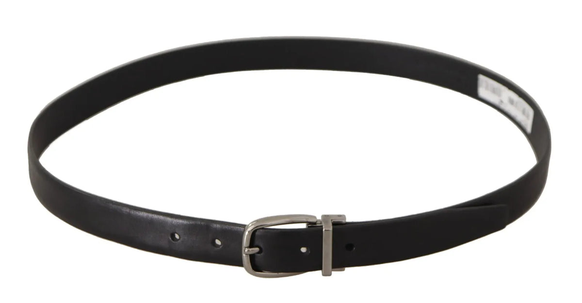 Black Classic Leather Silver Tone Metal Buckle Belt