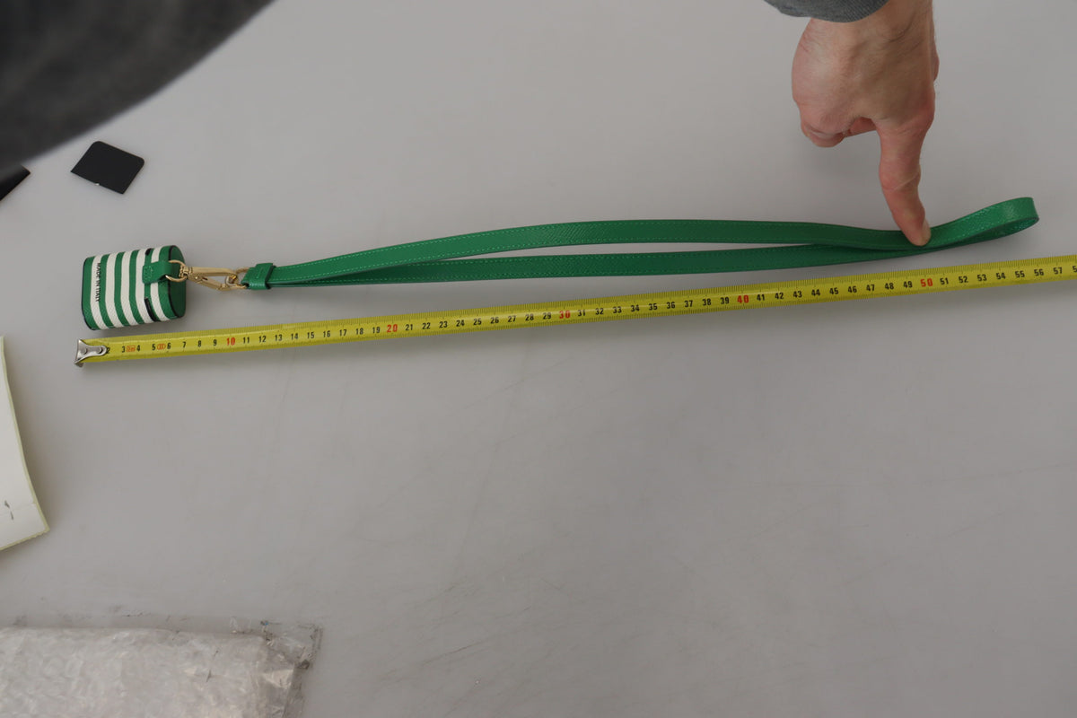 Green Leather Strap Gold Metal Logo Airpods Case
