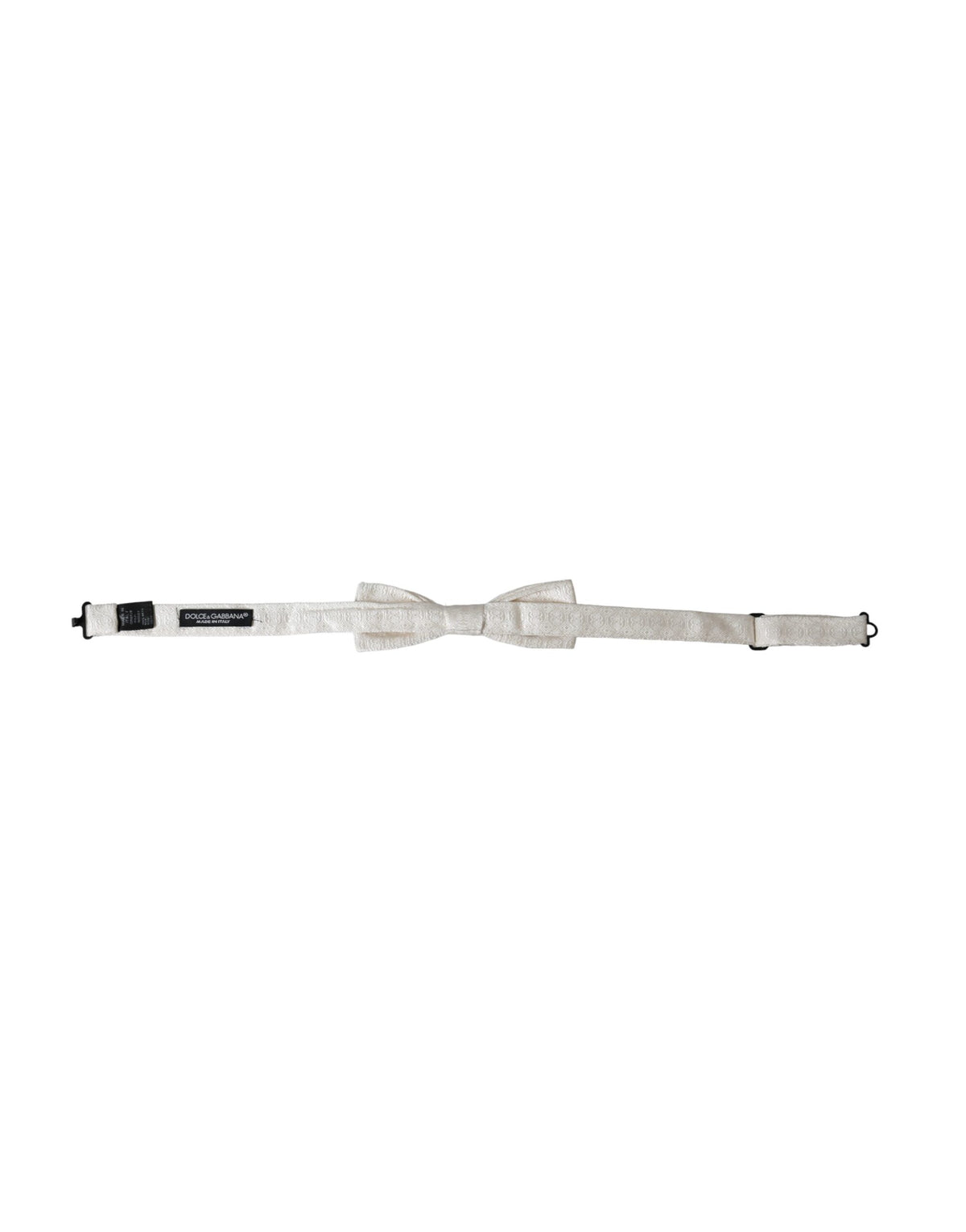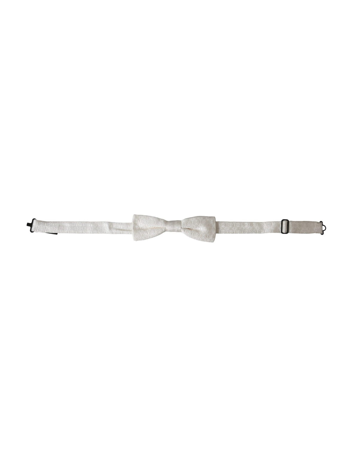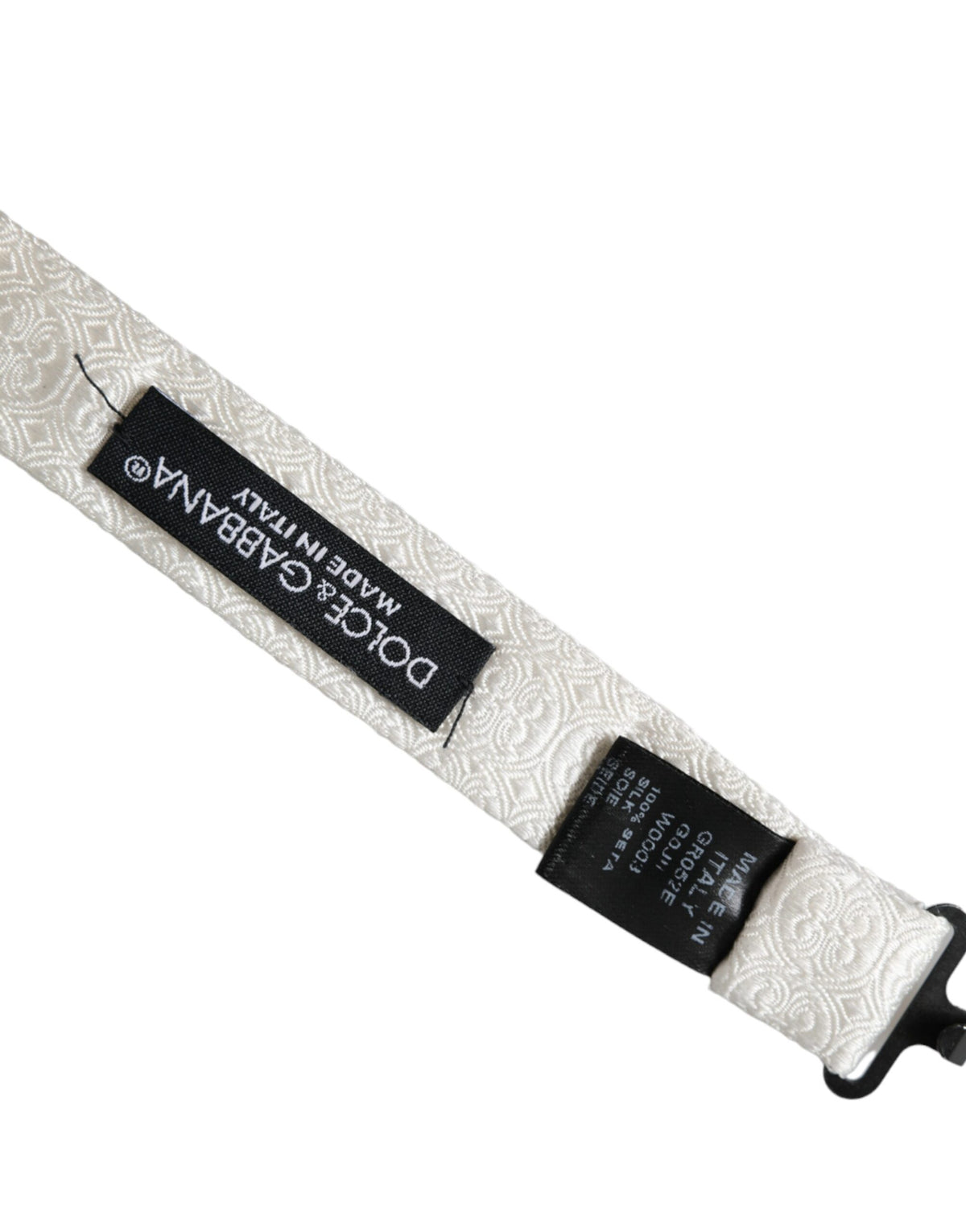 White Silk Patterned Adjustable Neck Men Papillon Bow Tie