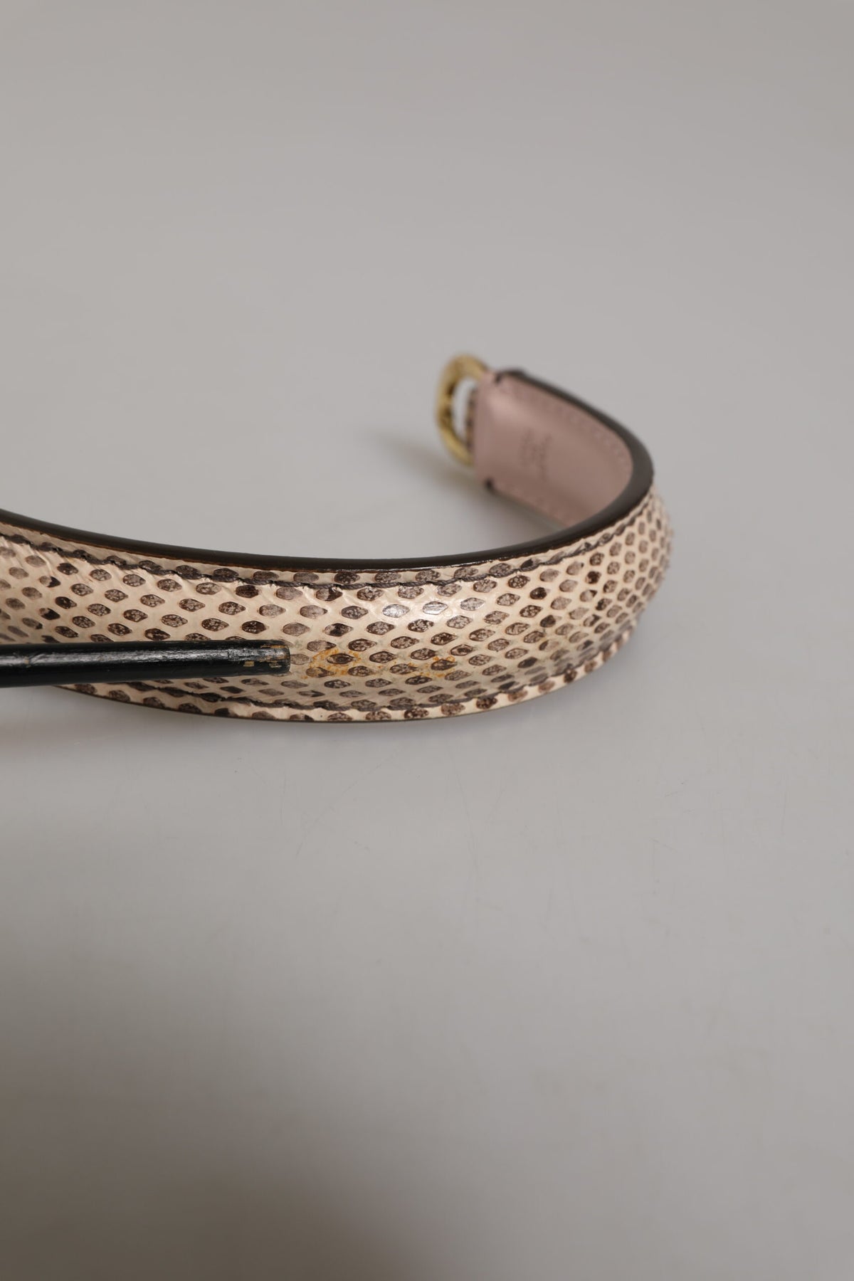 Beige Brown Snakeskin Leather Gold Ring Shoulder Strap