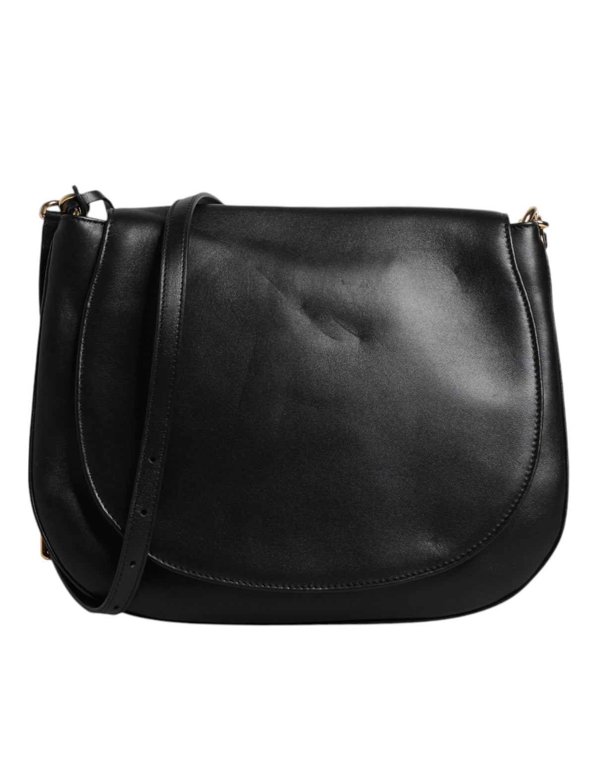 Black Leather Flap Saddle Shoulder Bag