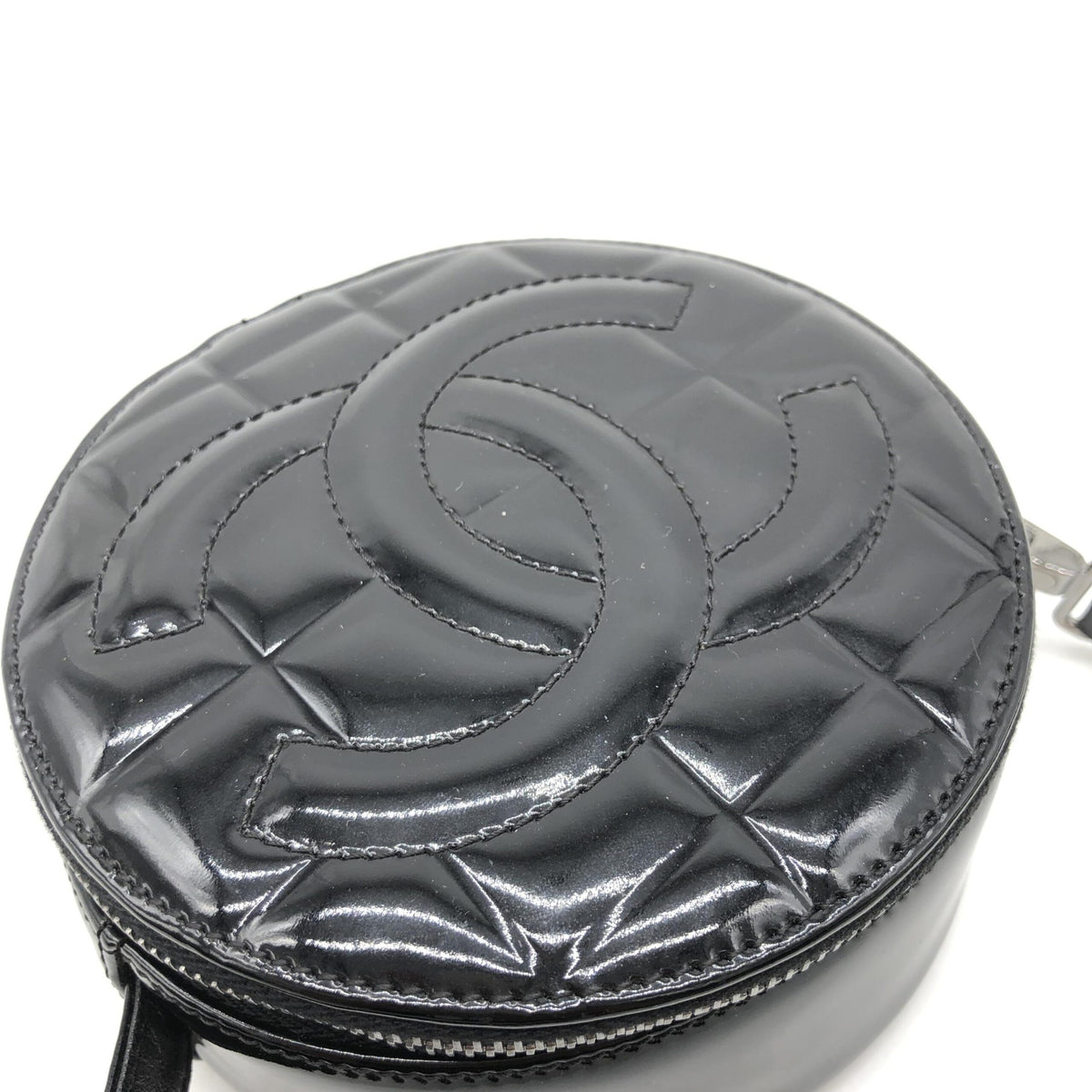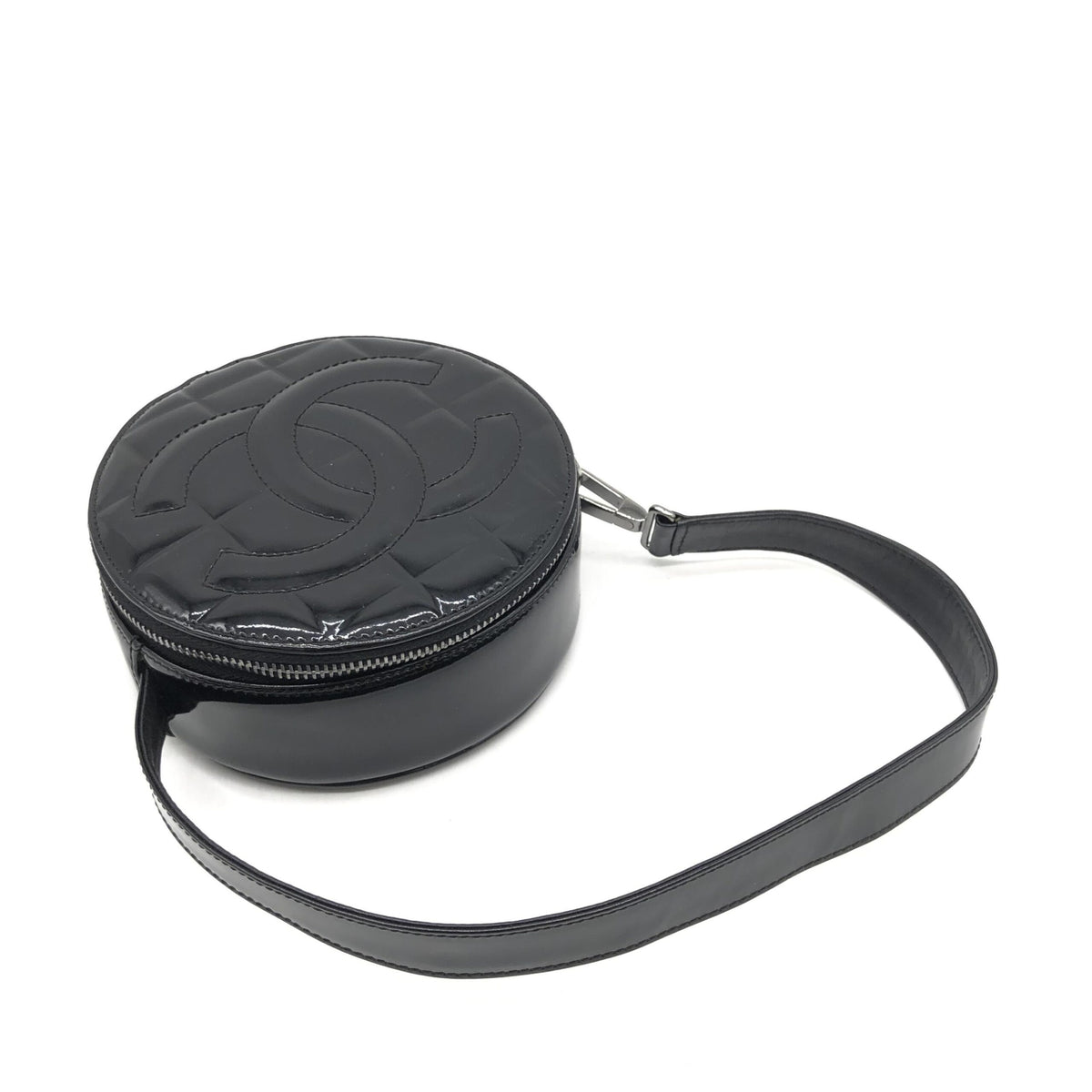 Black Patent Quilted CC Circle Mini Bag