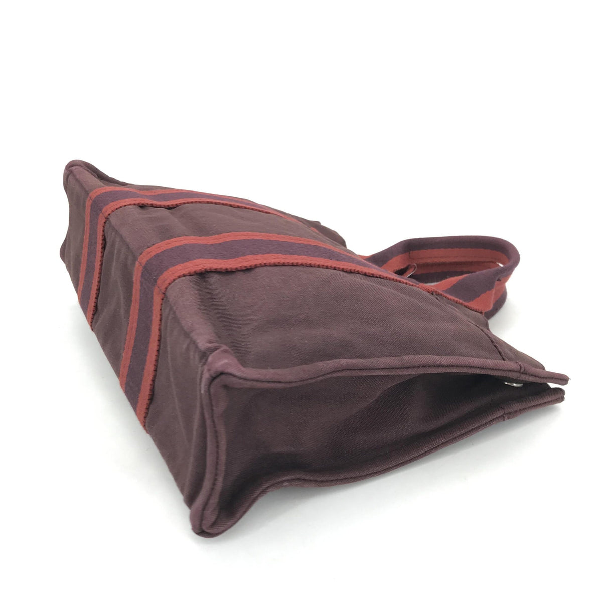 Crafted in a rich burgundy hue, this canvas tote exudes a sophisticated charm that effortlessly complements any ensemble. The exterior and interior both exhibit minor wear, a testament to its gentle use and careful preservation over time. Its compact size makes it perfect for daily use, while its understated design ensures it remains a versatile staple for various occasions.