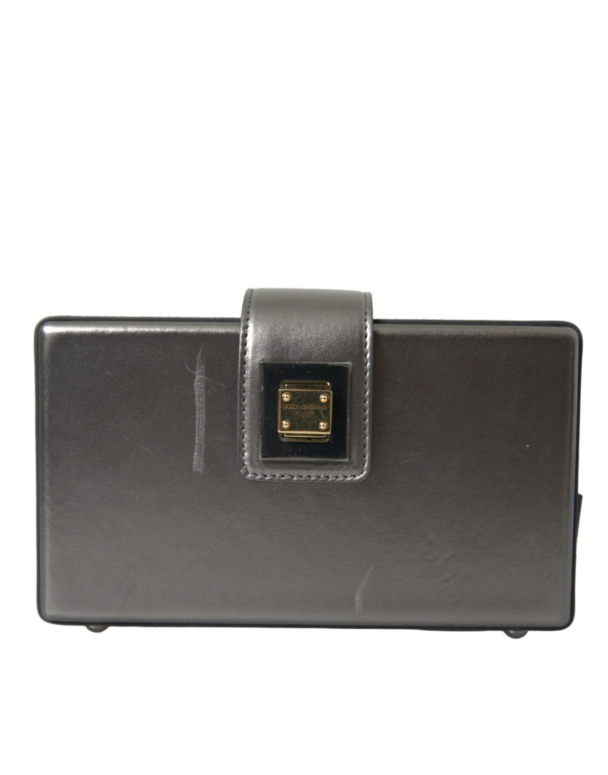 Metallic Gray Calfskin Leather DG BOX Shoulder Bag