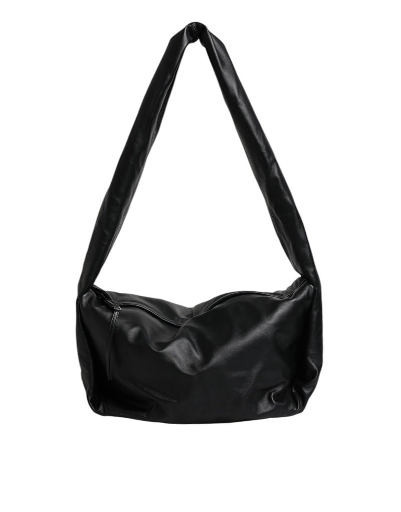 Black Leather Logo Plaque Shoulder Bag