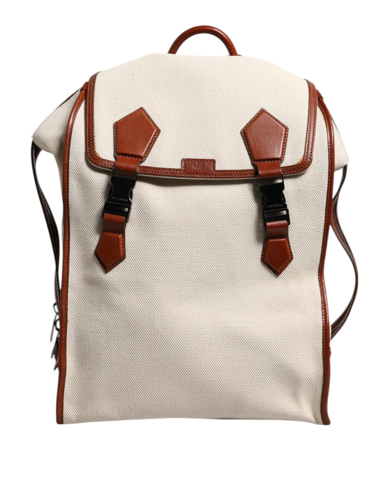 Beige Brown Canvas Leather EDGE Travel Men Back Pack Bag