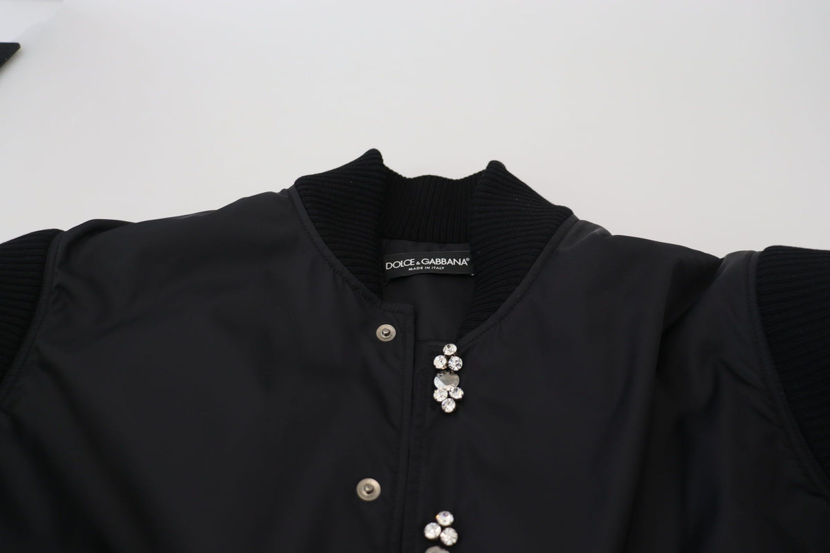 Absolutely stunning, 100% Authentic, brand new with tags Dolce & Gabbana Black nylon bomber jacket with crystal embellished. Features long sleeves. Ribbed bottom hem and cuffs.