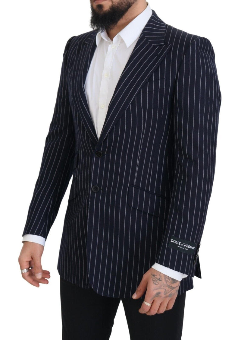Dark Blue Stripe Wool Single Breasted Blazer