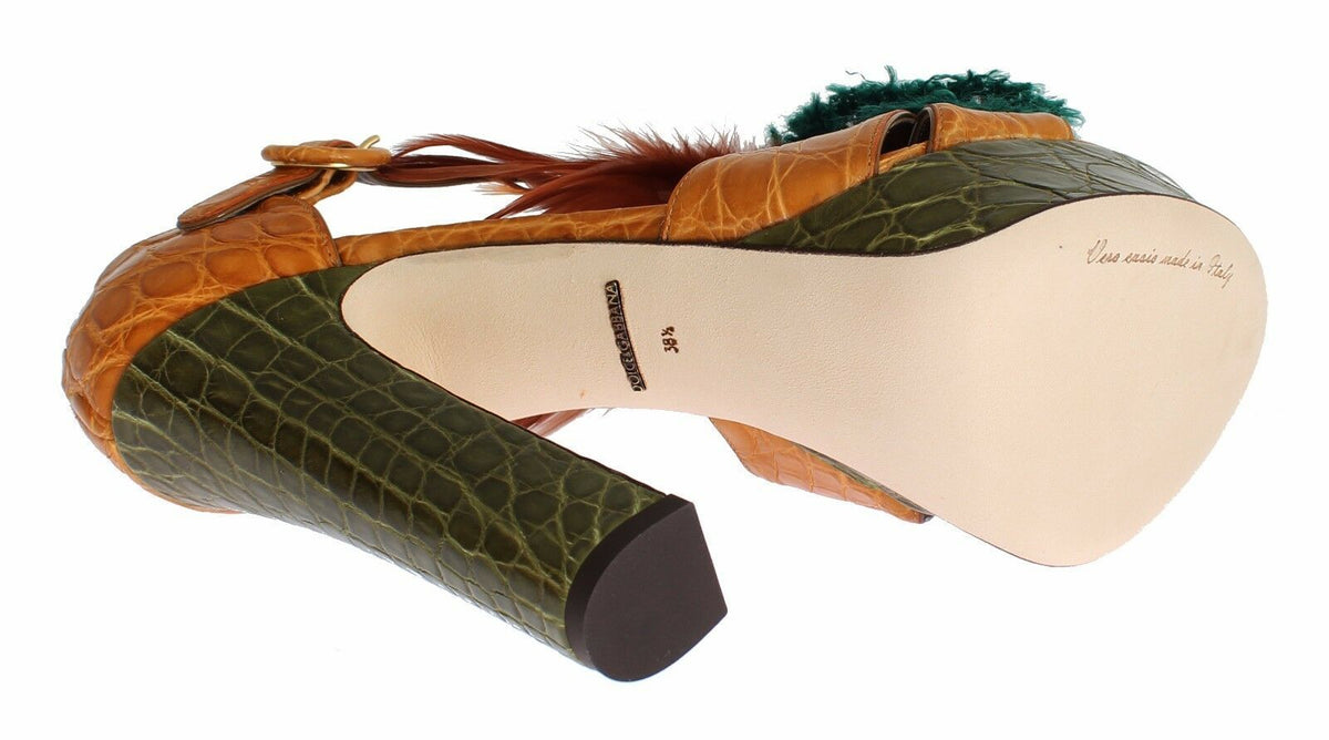 Gorgeous, brand new with tags, 100% Authentic Dolce & Gabbana multicolor skin crystal ankle strap platform sandals shoes. This items comes from the exclusive MainLine Dolce & Gabbana collection.