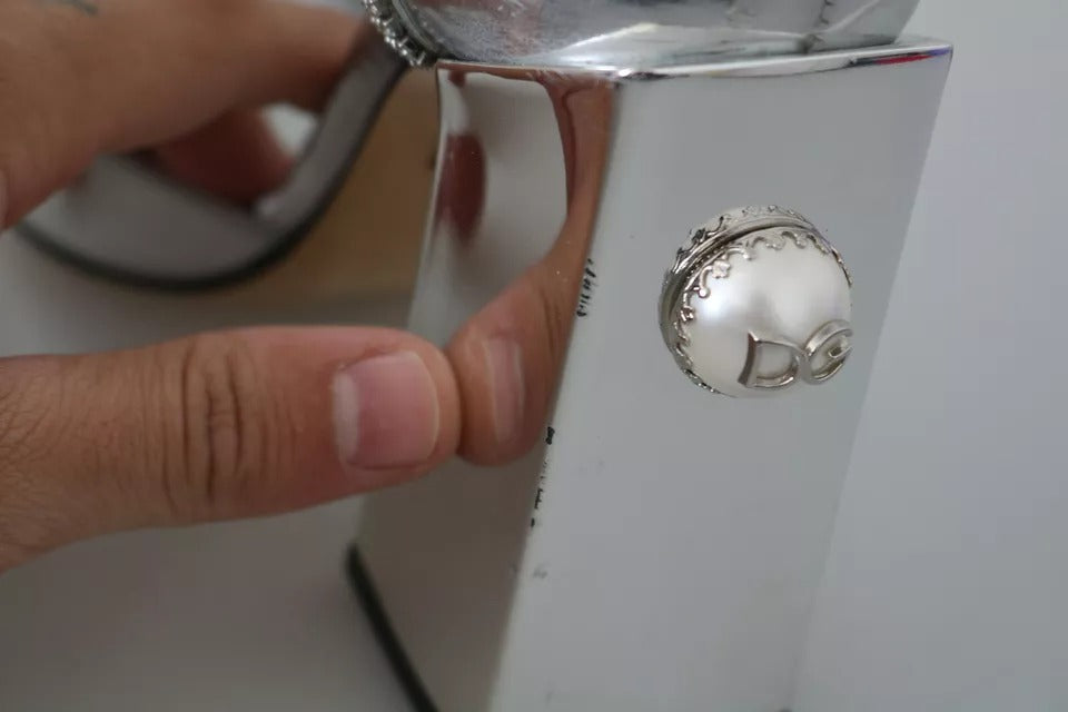 Gorgeous pre-owned with tags, 100% Authentic Dolce & Gabbana silver T-strap sandals with clear crystals.