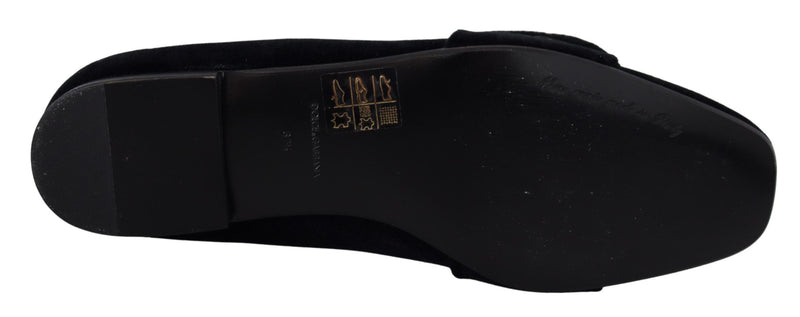 Black Velvet Crystals Loafers Flats Shoes