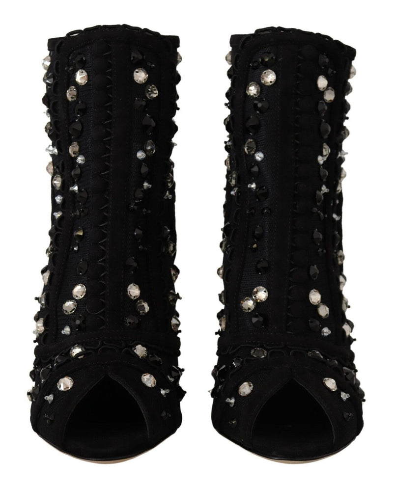 Black Crystals Heels Zipper Short Boots Shoes
