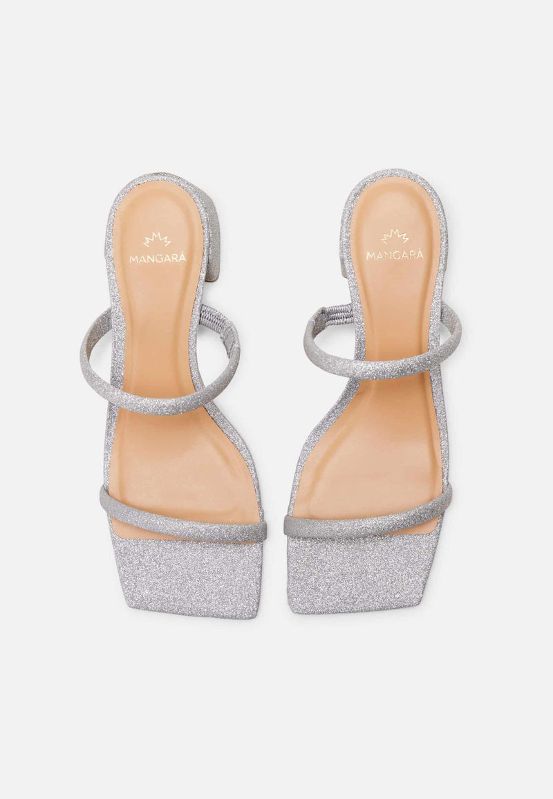Silver Glitter Mules Maiate – Women’S 4 Cm Low Block Heel Slip-On Sandals