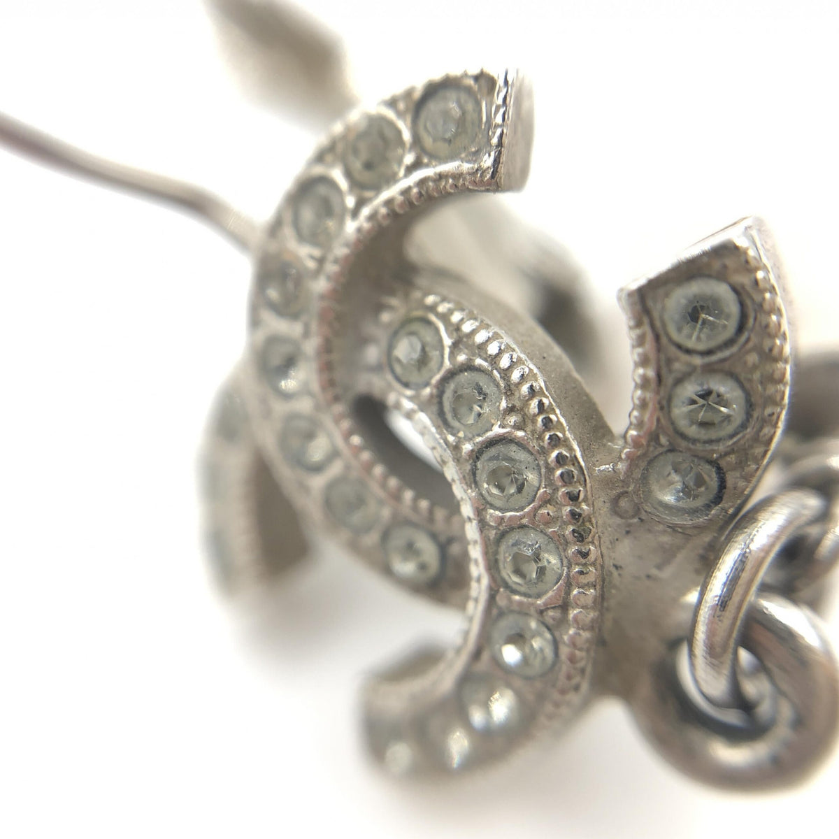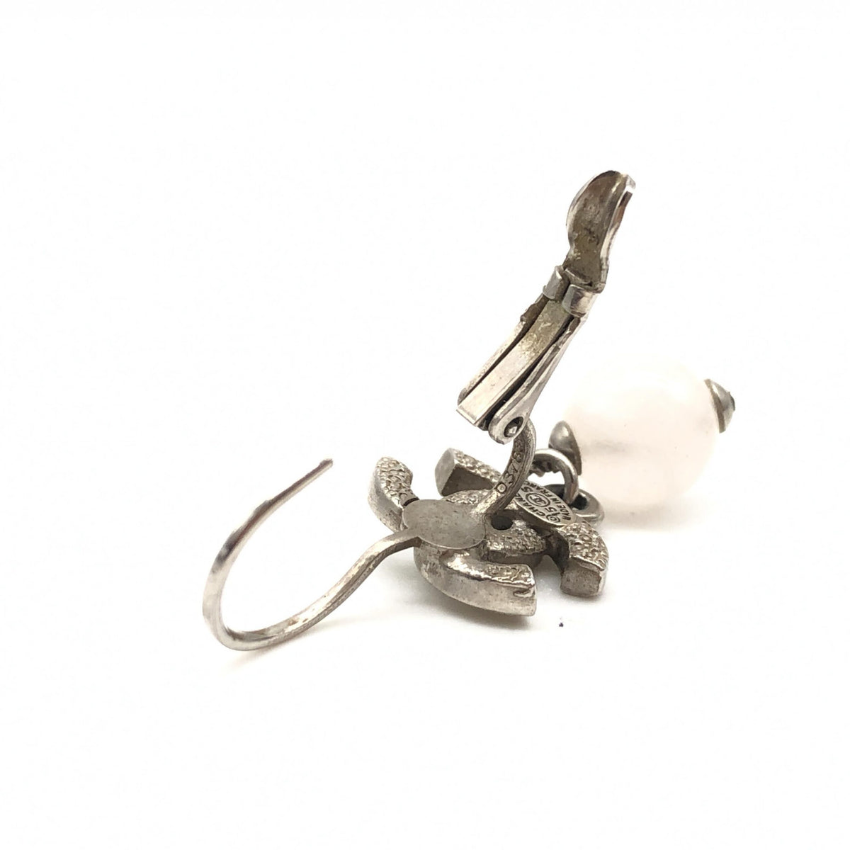 The earrings feature the signature Chanel CC logo, adorned with shimmering crystals and lustrous faux pearls, creating a harmonious blend of classic and contemporary design. Despite some metalware tarnishing, which adds a touch of vintage charm, these earrings remain a stunning accessory that can elevate any ensemble.