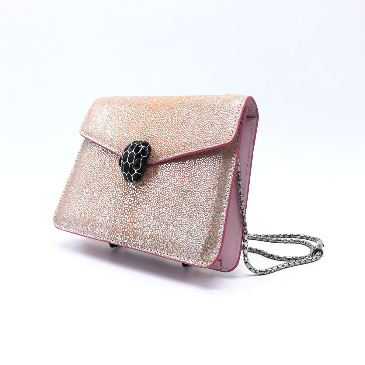 Introducing the exquisite Bulgari Serpenti Forever Top Handle Bag, a timeless piece that embodies elegance and sophistication. Crafted with meticulous attention to detail, this bag is a testament to Bulgari’s renowned craftsmanship and luxurious design.