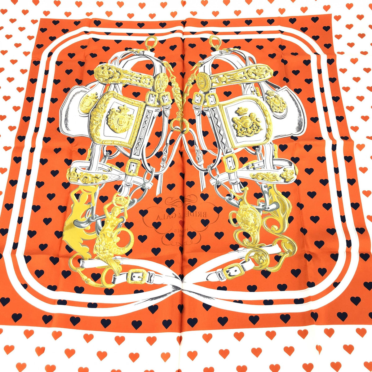 Introducing the exquisite Hermès Silk Brides De Gala Love Scarf, a timeless accessory that embodies elegance and sophistication. Crafted with meticulous attention to detail, this 90cm scarf is a testament to Hermès’ renowned craftsmanship and luxurious heritage.