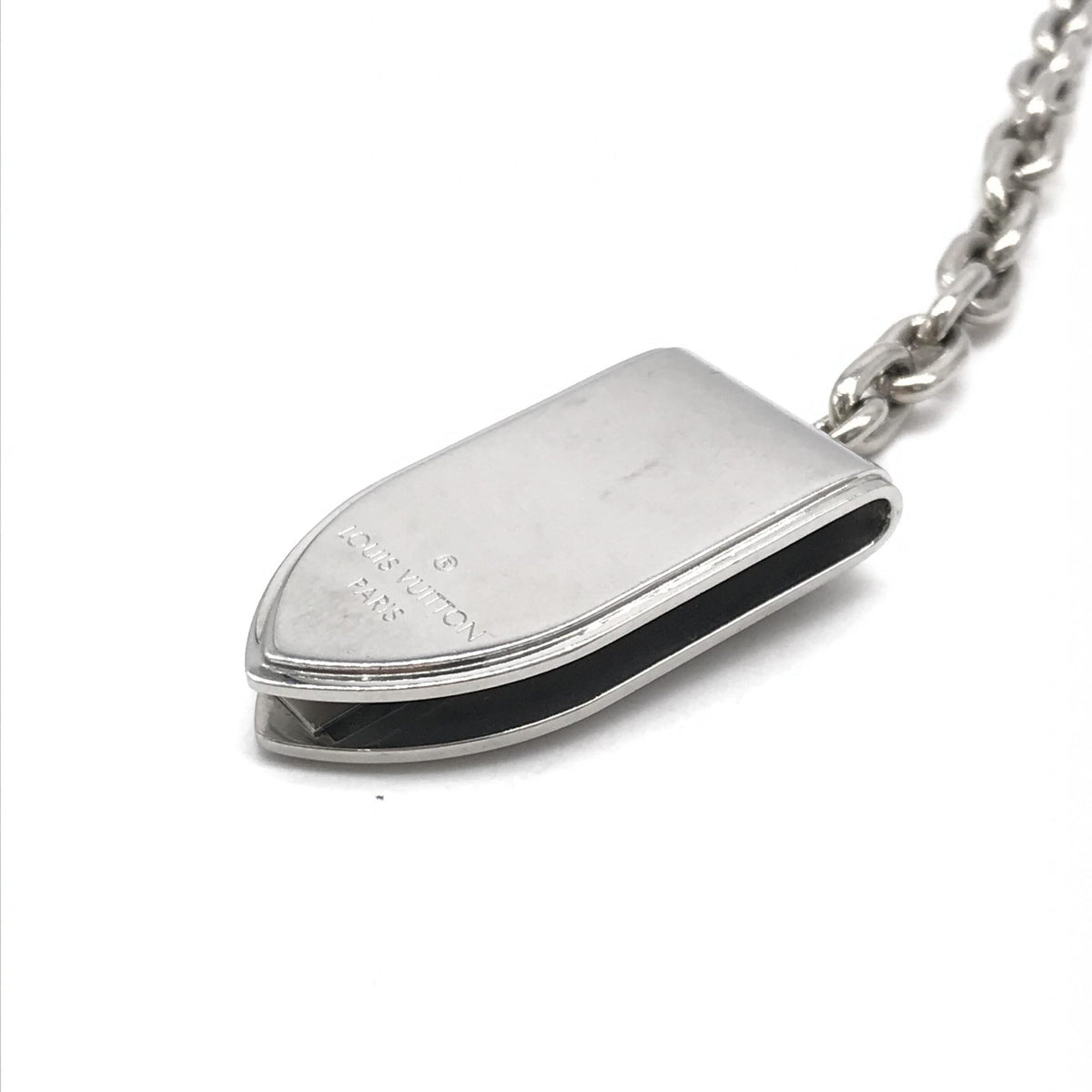Introducing a timeless piece of luxury from the esteemed house of Louis Vuitton: the Silver Money Clip with Chain. This exquisite accessory, graded as B (Good), showcases the brand’s commitment to elegance and functionality. The exterior bears subtle signs of previous use, adding a touch of character and history to this sophisticated item. Notably, there is no odor present, ensuring a pleasant experience for its new owner.