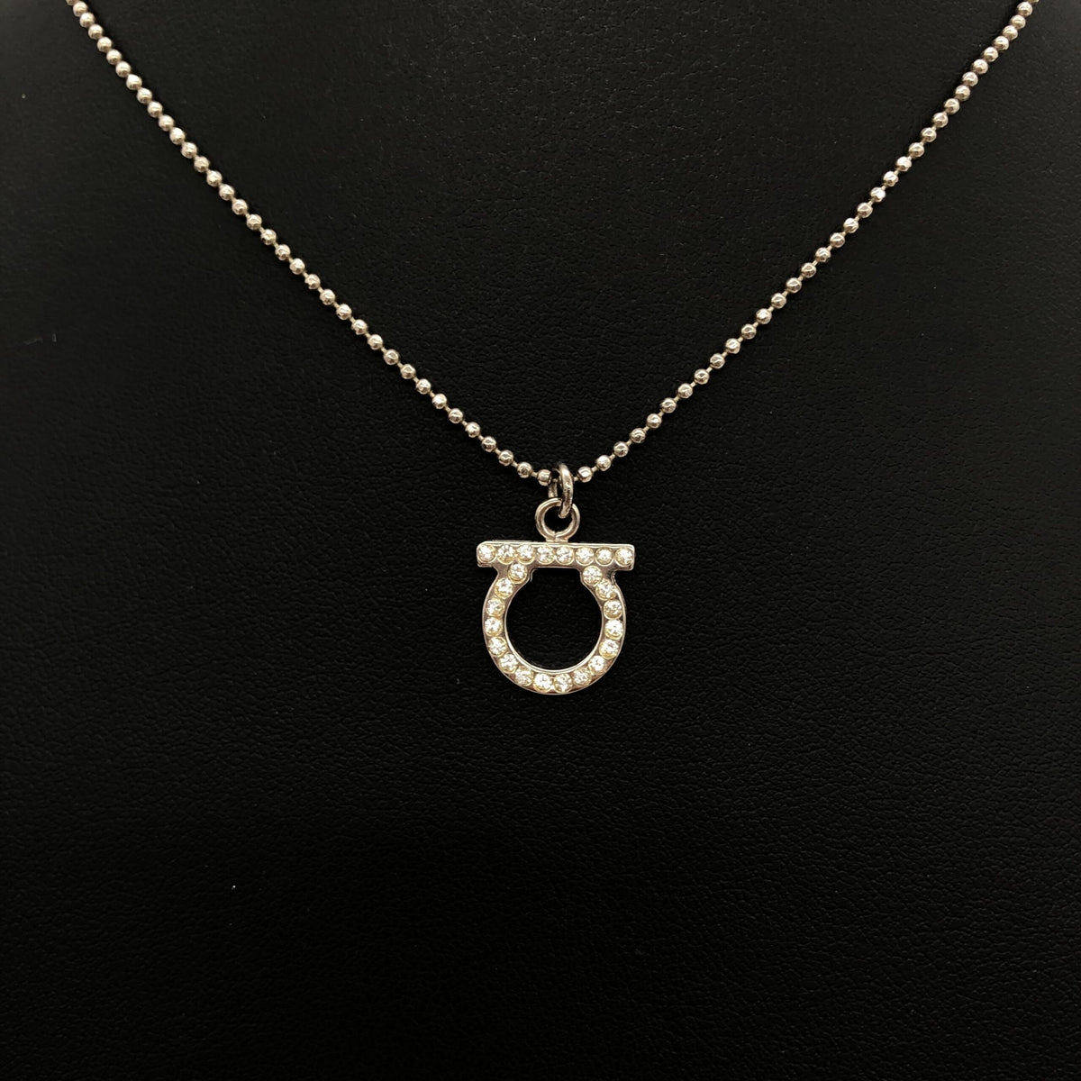 Presenting an exquisite piece from the renowned house of Salvatore Ferragamo: a Silver Plated Necklace with a Crystal Pendant. This elegant accessory embodies the timeless sophistication and meticulous craftsmanship that Ferragamo is celebrated for.