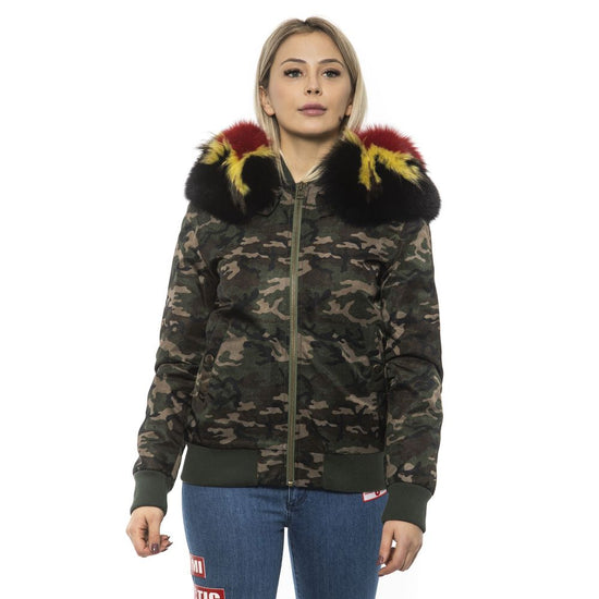 Discover the epitome of urban chic with the Mr&Mrs Italy Women’s Bomber Jacket. Flaunt your fearless fashion sense with this bold camouflage print piece that effortlessly blends luxury with street style. Perfect for the trendsetter who isn’t afraid to stand out, this jacket features a sleek zip closure and two functional front pockets, all while keeping you cozy with its sumptuous hood equipped with removable fur. Crafted in Italy, it’s a blend of sophistication and edge.