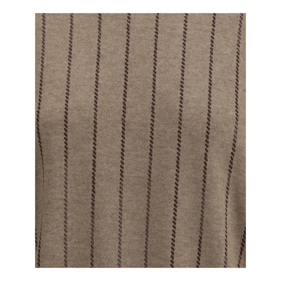 Brunello Cucinelli’s sequined Sweater is an elegant and feminine garment enriched with bright details. Made with a ribbed crew neck, hem and cuffs, it features a vertical striped pattern obtained through the application of delicate sequins, which give the design a sophisticated shine. Perfect for adding a touch of light to everyday or evening looks with the unmistakable style of the fashion house.