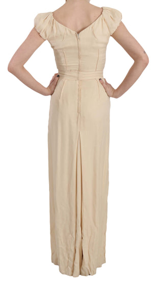Gorgeous brand new with tags, 100% Authentic Dolce & Gabbana Dress Beige Silk Column Garterized Sleeve Gown