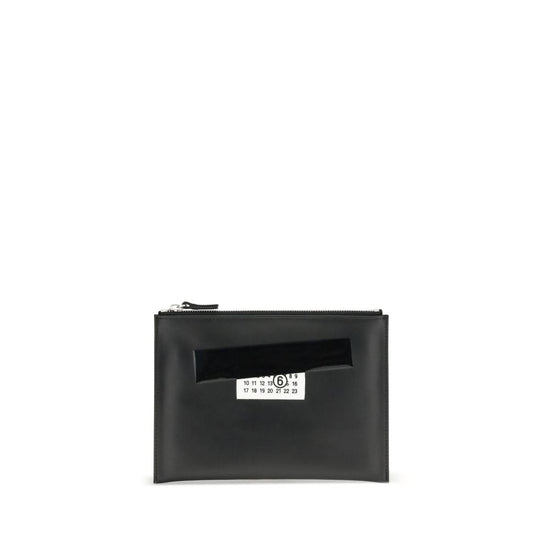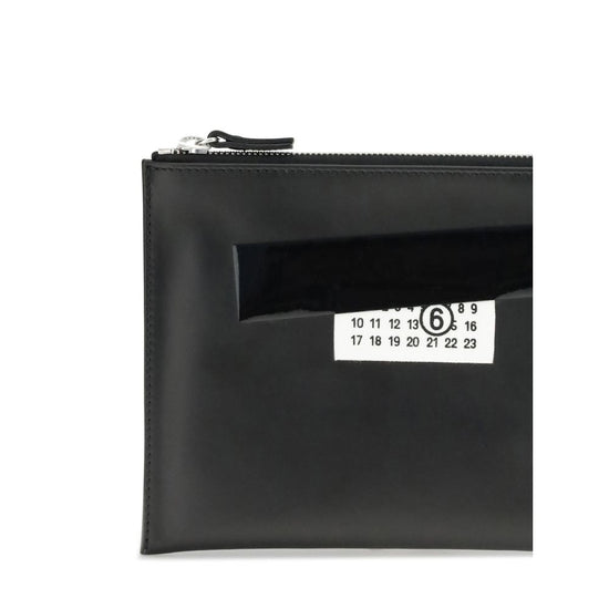 The leather Pouch by MM6 combines minimalism and functionality in a sleek design. Crafted from smooth leather, it features a top zip closure and is embellished with a printed logo on the front. A compact and versatile accessory, perfect for carrying essentials in style.