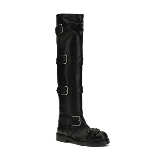 Extra long buckled Boots by Dolce&Gabbana embody a bold and sophisticated aesthetic. Crafted in the signature Bernini shape, they feature a leather heel-shell insole embellished with a custom label. Buckles, arranged throughout the shaft, add a bold and distinctive touch, while the palladium Miami finish completes the design with contemporary elegance.