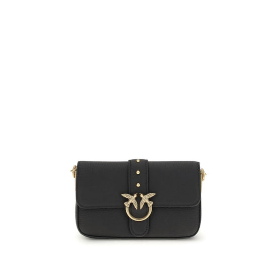 The Love One bag by Pinko features a flap-and-button closure and a Love Birds Diamond Cut buckle adorned with studded details on the front. The design is completed with a leather-and-chain shoulder strap and antique gold-tone hardware. A single compartment offers both practicality and style.