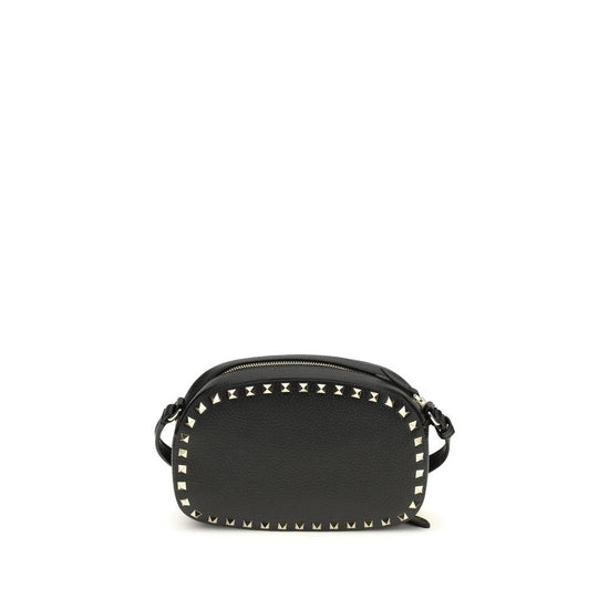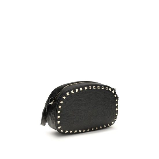 The Rockstud Shoulder Bag by Valentino Garavani is a mini bag in garnet calfskin, an elegant and bold accessory. It can be worn on the shoulder or cross-body thanks to the chain. The studs and metal parts have a platinum finish, adding a touch of luxury and character. The zipper closure completes the design while maintaining practicality and style.