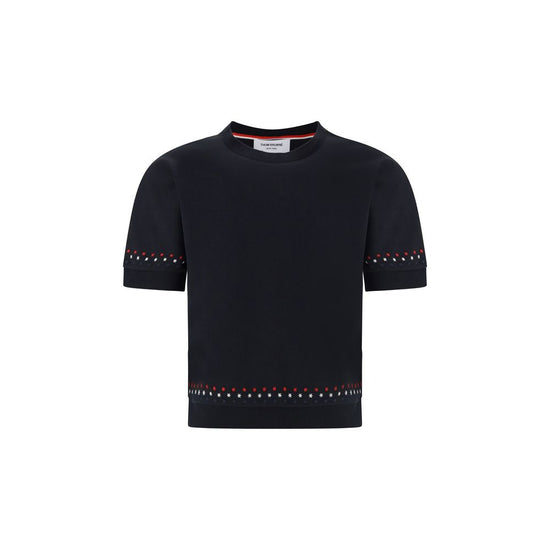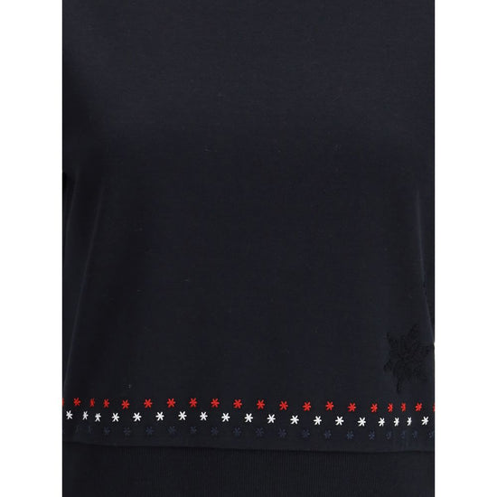 The Snowflakes T-Shirt by Thom Browne expresses the brand’s distinctive style through refined and iconic details. Made with a ribbed crew neck and hems, it features sleeves and hem decorated with snowflake stitching in the house’s three emblematic colors. On the front, at the bottom right, small tone-on-tone snowflakes add an elegant and discreet touch, making this garment a perfect balance between essentiality and sophistication.