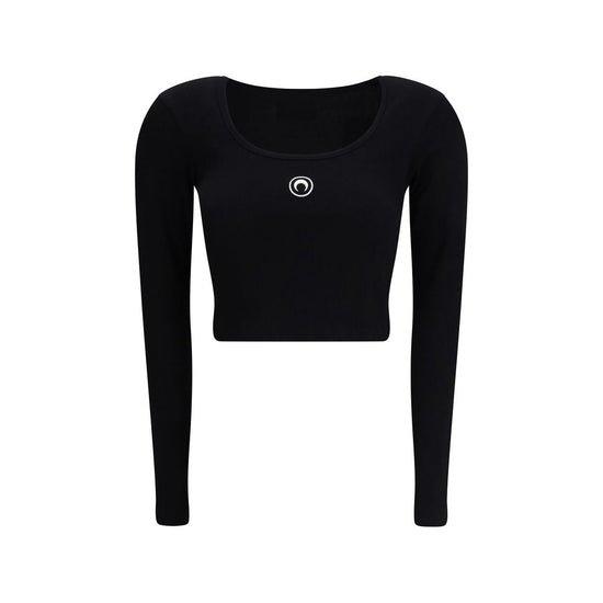 The Moon Logo long-sleeved Top by Marine Serre redefines the classic t-shirt with a modern, sporty elegance. Featuring a fitted cropped silhouette and a ribbed round neckline, it highlights the precision of its construction. The embroidered crescent moon logo and the woven branded label at the back add a signature touch, emblematic of the brand’s contemporary aesthetic. An essential and refined piece, perfect for completing dynamic and urban looks.