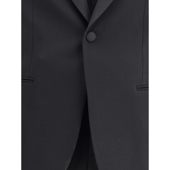 The slim fit Tuxedo by Giorgio Armani embodies timeless elegance for formal occasions. Crafted from high-quality fabrics, it features a refined design with clean lines, enhancing the silhouette with the classic sophistication that defines Giorgio Armani’s signature style.