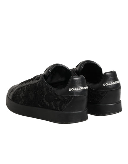 sneakers combine sporty style with feminine elegance. Crafted from intricate black floral lace, they feature a low-top silhouette with tonal laces and a sturdy rubber sole. The refined lace texture adds a touch of sophistication, making these sneakers perfect for both casual and chic everyday wear.