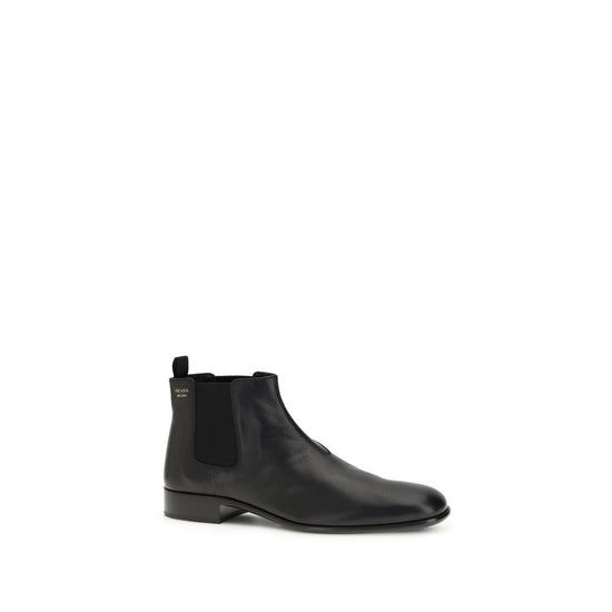 The leather Ankle Boots by Prada reinterpret a wardrobe classic with essential lines and distinctive details. The upper is enriched with elastic side inserts and a rear pull-on for a quick and practical fit. The leather lining ensures comfort, while the screen-printed logo adds an iconic touch. The above-ankle design is complemented by a one-piece leather-and-rubber sole with a branded logo that combines elegance and functionality.
