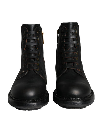 Gorgeous brand new with tags, 100% Authentic Dolce & Gabbana mens boots shoes features a lace up and side zip closure.