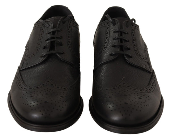 Black Leather Oxford Wingtip Formal Dress Shoes