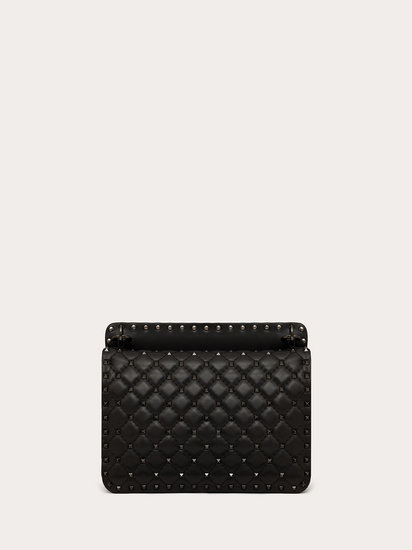 Valentino Garavani Rockstud Spike medium chain bag in soft lambskin nappa leather. Quilted and decorated with small tone-on-tone studs. The bag can be worn on the shoulder/cross-body or hand-held thanks to its removable handle and sliding chain.