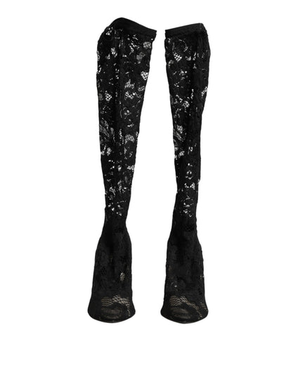 Gorgeous brand new, 100% Authentic Dolce & Gabbana Taormina Lace Sock Boots feature a refined black lace construction that blends the silhouette of pumps with the comfort of ankle socks. Designed with a pointed toe and a slim stiletto heel, they exude timeless femininity and sophistication. Perfect for evening wear or stylish occasions, these lace boots capture Dolce & Gabbana’s signature romantic and luxurious aesthetic.