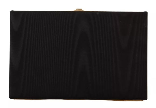 Gorgeous, 100% Authentic Dolce & Gabbana miniature clutch, black model, covered with dense moire silk. The minaudière is closed with a golden frame lid.