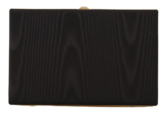 Gorgeous brand new with tags and box, 100% Authentic Dolce & Gabbana miniature clutch, black model, covered with dense moire silk. The minaudière is closed with a golden frame lid.