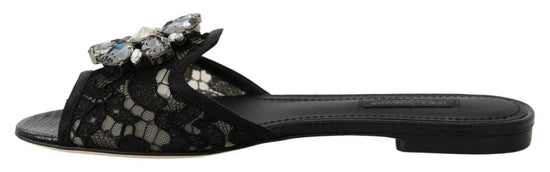 Gorgeous brand new with tags, 100% Authentic Dolce & Gabbana Mules featuring a transparent mesh upper covered with Taormina lace. Satin trims and jewel flower made with multitone crystals. Leather insole, leather sole.