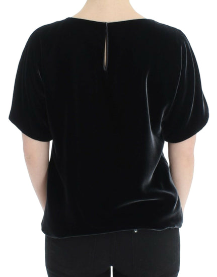 Gorgeous brand new with tags, 100% Authentic Dolce & Gabbana black velvet shortsleeved crewneck t-shirt blouse top. This item comes from the exclusive MainLine Dolce & Gabbana Collection.