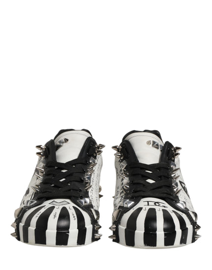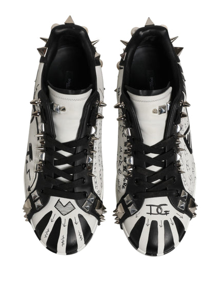 sneakers bring a bold, statement-making edge to casual footwear. Crafted from premium black and white materials, they feature a sleek low-top silhouette with lace-up closure and are embellished with metallic studs for a striking designer finish. Perfect for adding a touch of attitude and luxury to everyday looks.