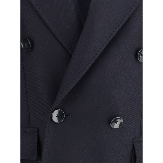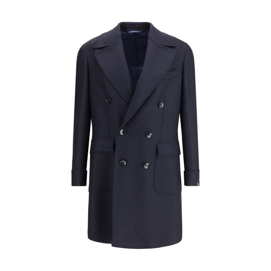 The Gi Capri Coat is a refined double-breasted design crafted from pure virgin wool, featuring classic lapels and two front flap pockets. A fabric band on the back provides a distinctive and modern touch, elevating this timeless piece with a note of understated sophistication.