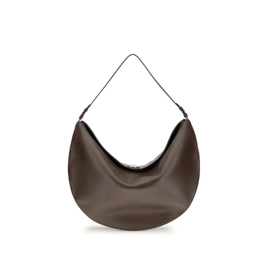 The Ovalo Bag by Jacquemus is an elegant large hobo bag crafted from smooth leather, featuring a slim shoulder strap for easy carrying. The flap with a large engraved snap button ensures secure closure, while the interior includes a leather zip pocket and slots for credit cards. The embossed logo and fully cotton-lined interior complete this refined and versatile accessory.