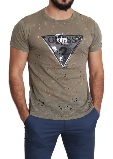 Gorgeous brand new with tags 100% Authentic Guess Brown cotton stretch t-shirt features round neckline and short sleeves.