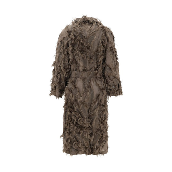 Brunello Cucinelli’s coat is an elegant and refined piece, featuring a classic collar that adds a sophisticated touch. The front button closure ensures a secure fit, while the two welt pockets on the front offer functionality and a clean design. The back slit allows more freedom of movement and a dynamic look. Applied synthetic fur details give a luxurious accent while maintaining a sleek, contemporary style at all times.