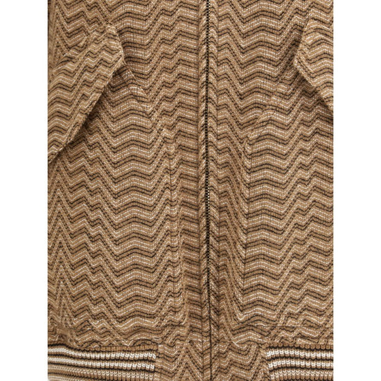 The Bomber with irregular chevron pattern elegantly embodies Missoni’s distinctive craftsmanship. Crafted on a Caperdoni loom, this women’s piece reveals an interplay of textures and reliefs that create a dynamic and sophisticated design. The cotton and wool blend fabric combines comfort and structure, enhancing the graphic motif with a refined tactile effect. The bomber cut adds a contemporary touch, turning a symbol of tradition into a modern expression of style. A piece conceived for those who appreciate everyday sophistication and the authentic character of artisanal work.