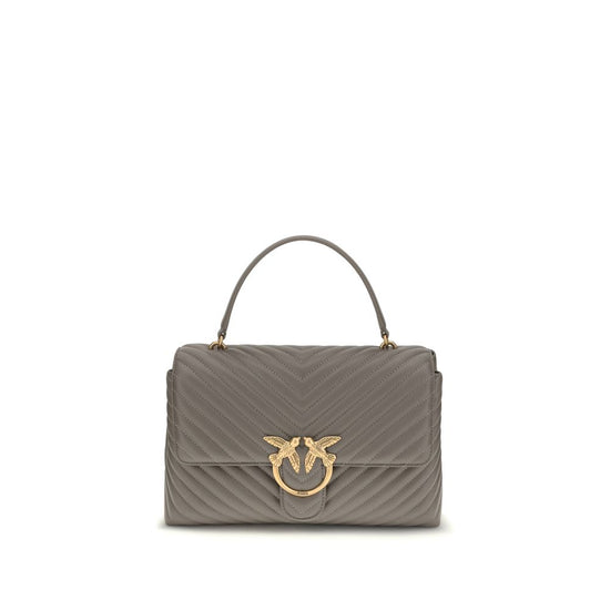 The Calfskin Love Lady Handbag by Pinko, magnetic flap front closure, iconic gold-plated Love Birds logo embossed on the front, quilted and padded design, double interior compartment, removable chain shoulder strap with smooth leather insert, flat rigid top handle, interior flat pocket with zipper, iconic tone-on-tone embroidered brand monogram on the back.