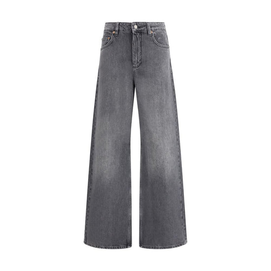 The Moon Laser Grey Wash Denim High-Waist Flare Jeans by Marine Serre feature a high-rise waist and regular-length flared leg, blending contemporary style with retro inspiration. Crafted from premium denim, they include a zipper and button closure, five-pocket construction, and belt loops. The signature laser-printed Moon motif adorns the back, while cotton twill front pockets and a leather logo patch add refined finishing touches emblematic of Marine Serre’s unique aesthetic.